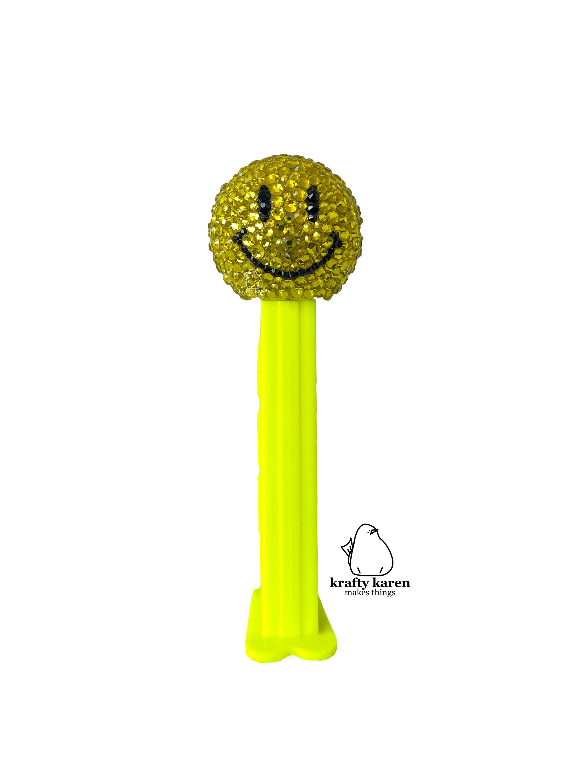 Rhinestone Emoji PEZ - Yellow Stem, WALMART Smiley Face